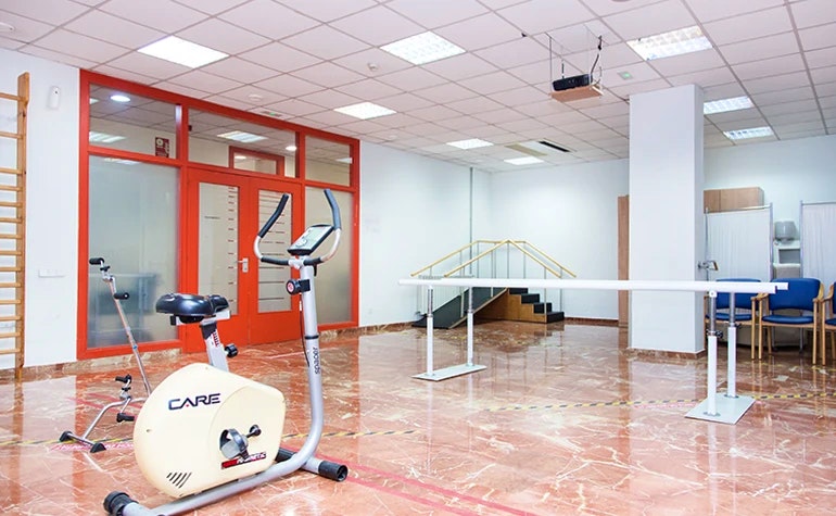 Gimnasio terapéutico: Espacio dotado con material de fisioterapia de última generación para trabajar la psicomotricidad, la fuerza y la coordinación.